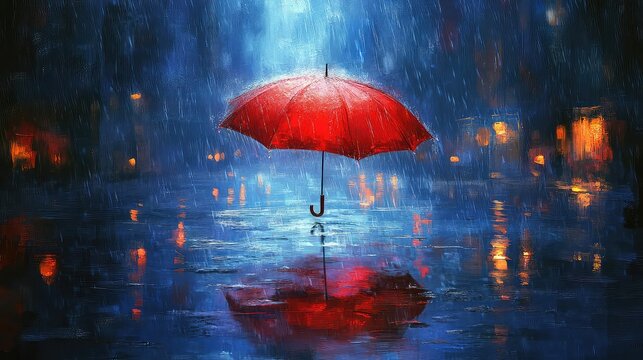Umbrella Rainy Street ultra-detailed artwork in sharp focus featuring enhanced clarity dramatic lighting minimal background ideal for posters prints digital medi