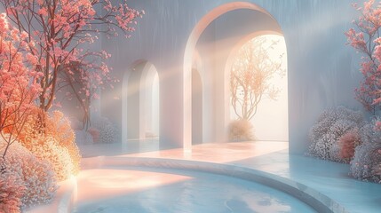 Perfectly smooth 3D land with soft, pastel hues and a pure, serene ambiance, ideal for a peaceful setting