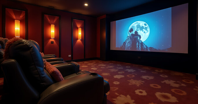 A cozy room with plush recliners large screen and dimmed lights creates the ideal setting for an immersive movie experience