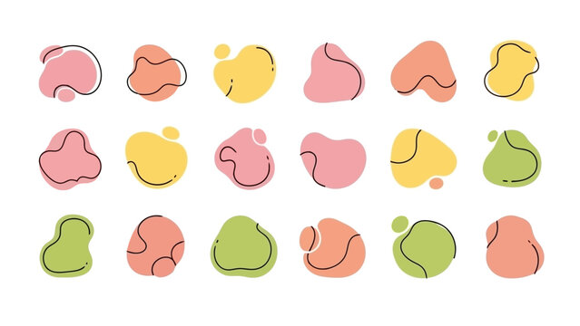 Set of colorful abstract blob shapes with black outlines, ideal for modern design