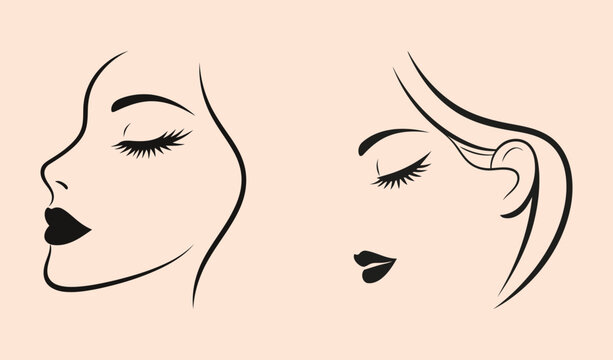 Two minimalist line art illustrations of a woman's face in profile and from a different angle, ideal for beauty, cosmetics, or wellness.