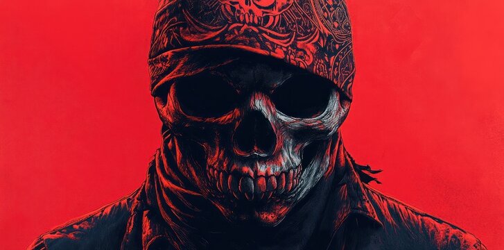 A stylized figure wearing a red hat and bandana, evoking a mysterious, outlaw persona.