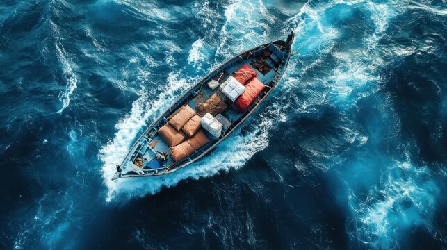 A smuggler's boat, laden with contraband, moves undetected through international waters