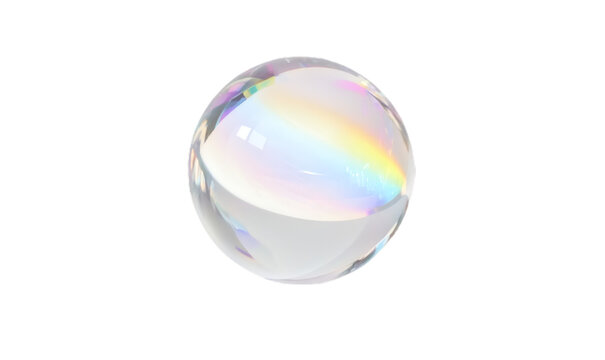 Realistic shiny rainbow ball with abstract 3D light bubble and glare effect.