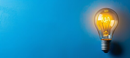 hand holding light bulb, illuminated light bulb, panoramic mock up over yellow background
