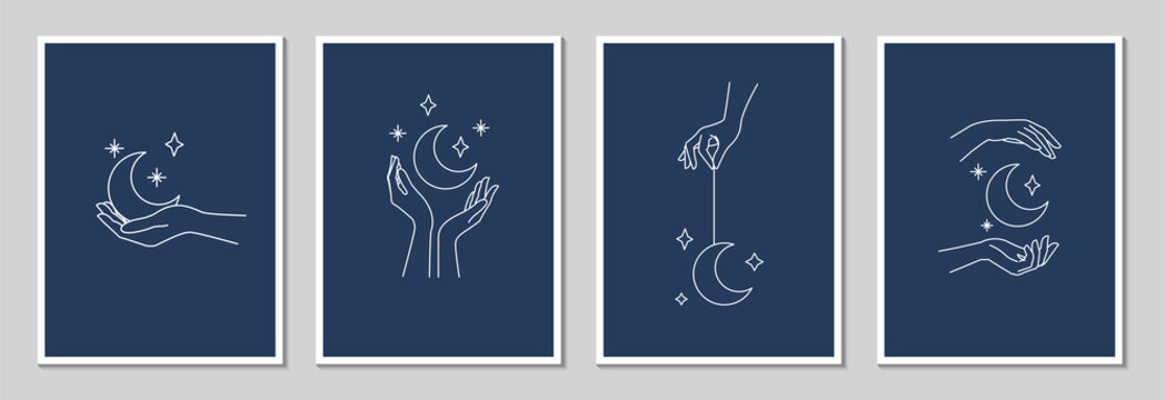 White geometric frames illuminated with abstract soft pastel gradients. Cute heart and moon shapes with blur gradient elements, minimalist aesthetic glowing arc frame template with sparkles vector set