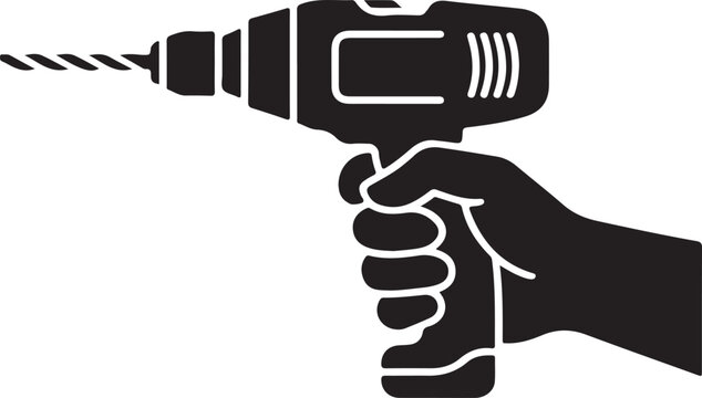 Hand holding power drill vector image, suitable for illustrating construction, renovation, and home repair projects.