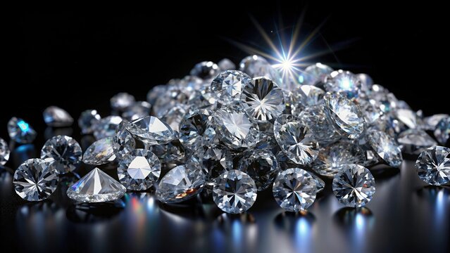 Pile of dazzling diamonds on a black background representing wealth and luxury, wealth, luxury, diamonds, precious gems