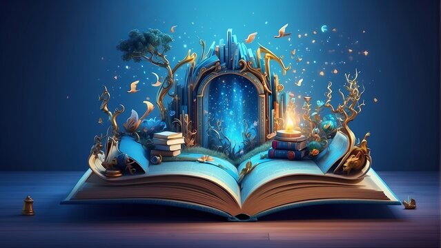 Creative growth concept with books and rocket imagery