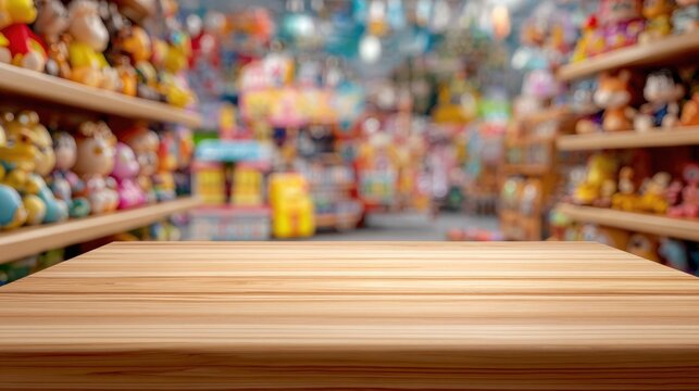 Colorful Blurred Playroom Setting With a Simple Wooden Table Ready for Kids Toys Promotion