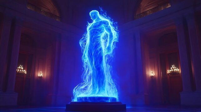 Blue fire man statue, grand hall