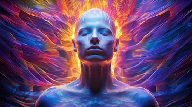 Vibrant colorful painting of a phoenix rising from flames symbolizing rebirth and immortality amidst a cosmic background of swirling colors and stars.