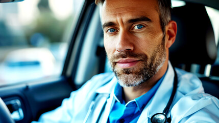 closeup doctor drive in the car