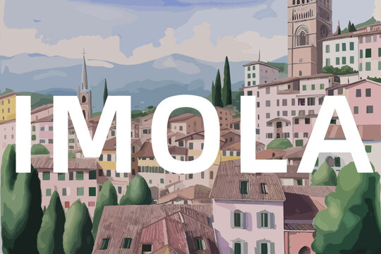 Imola: Beautiful painting of an Italian village with the name Imola in Emilia-Romagna