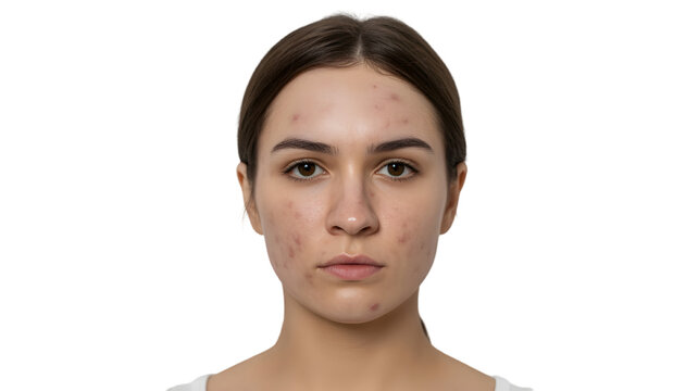 Close up portrait of a young woman with natural skin texture and imperfections isolated on transparent background