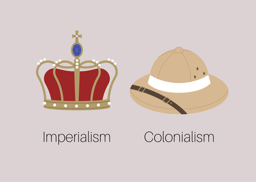 Imperialism and colonialism symbols, a royal crown and a hunter cork cat.
