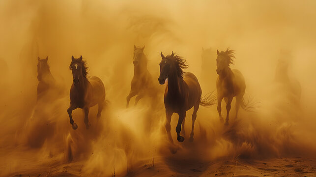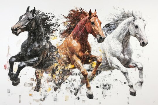 Dynamic Trio of Horses in Motion: A Collage of Power, Speed, and Graceful Jumps