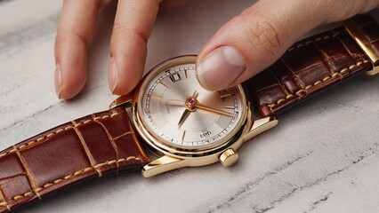 A person's hand holding a timepiece with a brown leather strap, highlighting the importance of punctuality