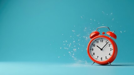A vibrant red alarm clock on a turquoise background, symbolizing the passage of time and the importance of punctuality.