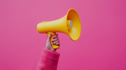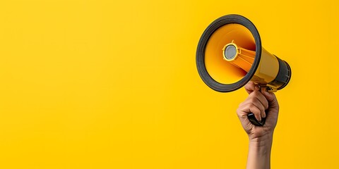 Funny Tabby Cat Holding Yellow Megaphone Announcing Important News Cute Pet Animal Advertising Marketing Social Media Concept Bright Yellow Background