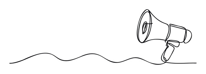Continuous one line art drawing of megaphone speaker for news and promotion. Isolated on white background  vector illustration