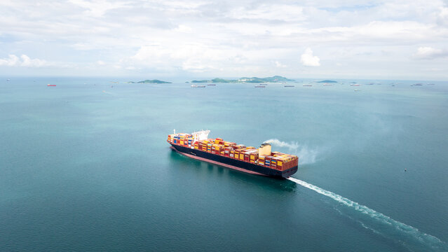 cargo logistic container ship sailing in sea import export goods and distributing products to dealer consumers across Asia pacific and worldwide. global business transportation by container ship,