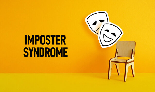 Imposter syndrome is shown using the text picture of masks