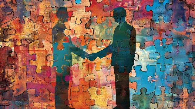 A handshake between two business partners takes place in a high-tech fulfillment center, marking the beginning of a strategic collaboration for improved efficiency.