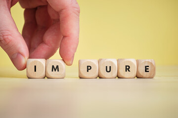 Concept pure and impure on wooden cubes.