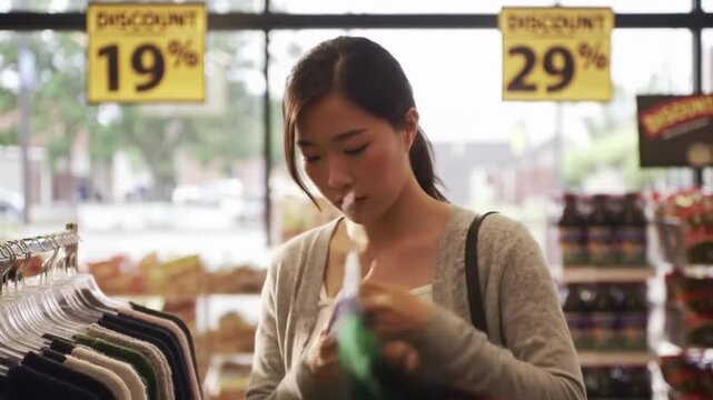 Woman Browsing Clothing Rack in Store Choosing Garment