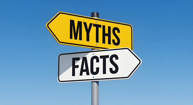 Choosing Between Myths and Facts Direction Signpost Against Blue Sky