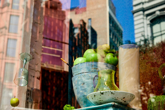 Abstract reflection of buildings and objects making for a colorful collection of elements and stuff