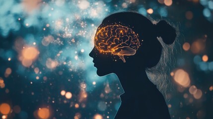 A silhouette of a person with a glowing brain, symbolizing mental focus, intelligence, and cognitive power