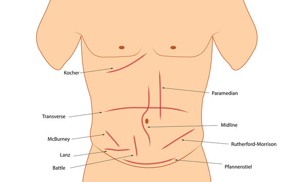 Abdominal Incision. Different types of abdominal incision. Surgery incision