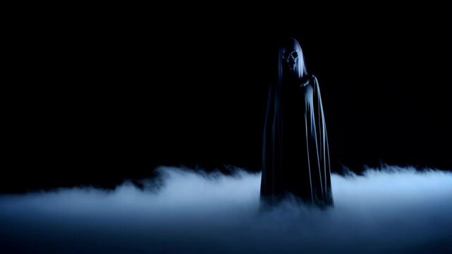 Rocket ascends through misty clouds against a dark sky in dramatic night launch sequence
