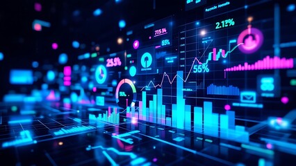 sales data growth graph chart and stock market are being analyzed. On a blue background, business strategy