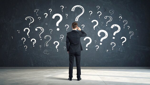 Businessman pondering questions