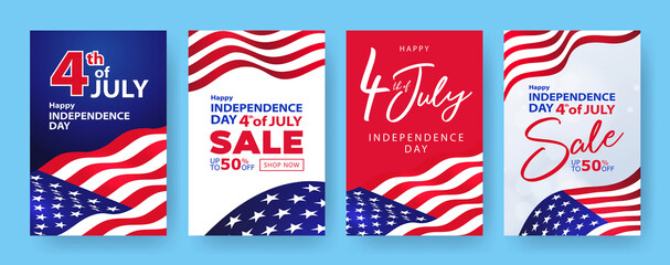 Fourth of July. 4th of July holiday banners, posters, cards or flyers Set. USA Independence Day design template for Sale, discount, advertisement, social media, web. Place for your text.