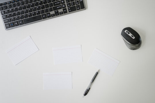 Blank white index cards scattered, organized mess ,  unorganized,  clean,  project