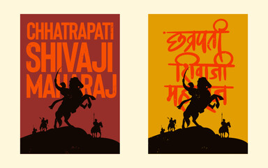 'Chhatrapati Shivaji Maharaj' Marathi, Hindi Calligraphy with Silhouette, Vector illustration for web banner, Social media post, hoarding template