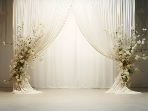 wedding stage decoration with flower, Luxury Wedding Arch with floral decorations, white backdrop with decorative flowers