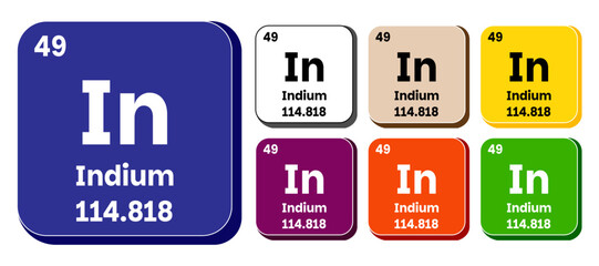 In, Indium element vector icon set, periodic table element. Vector illustration EPS 10 File. Isolated on white background.