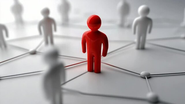 Standing Out from the Crowd: A single red figure stands out prominently among a network of connected white figures.