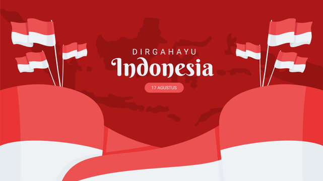 Vector red color Flat design, Illustration of flag for poster. 17th August Indonesia Independence Day concept.