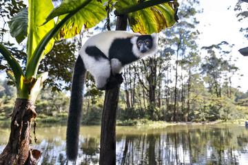 Beautiful image of the Indri lemur (Indri Indri) sitting on tree in Madagascar