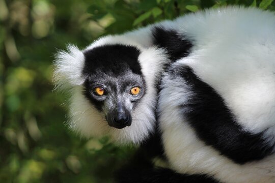 Closeup of an indri under the sunlight