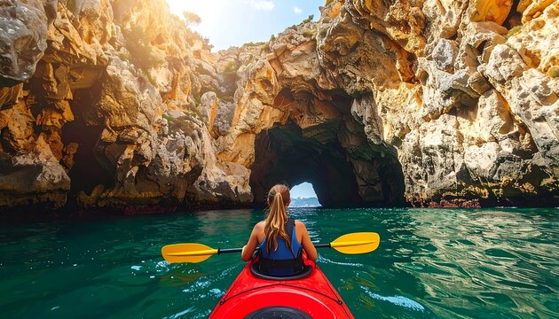 青い海と岩の洞窟を進むカヤック体験が冒険心を刺激する海上アクティビティ