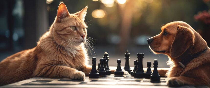 Chimpanzee engages in an intense chess match, pondering strategies while contemplating the white king piece on the board