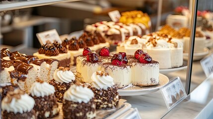 A display of soft and velvety Tiramisu dessert at a family-run pastry shop