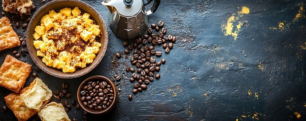 Coffee, pastry, and cream dessert